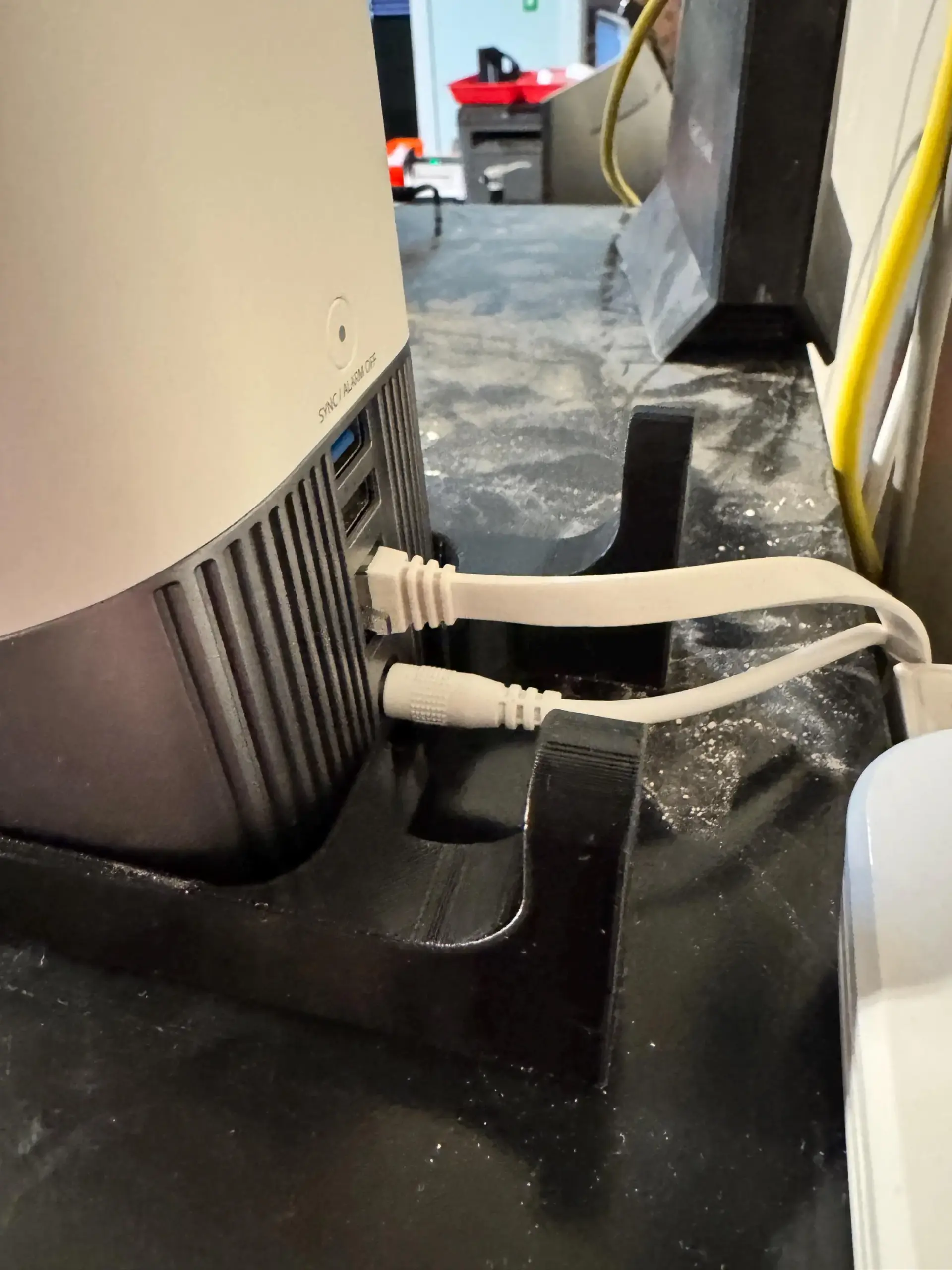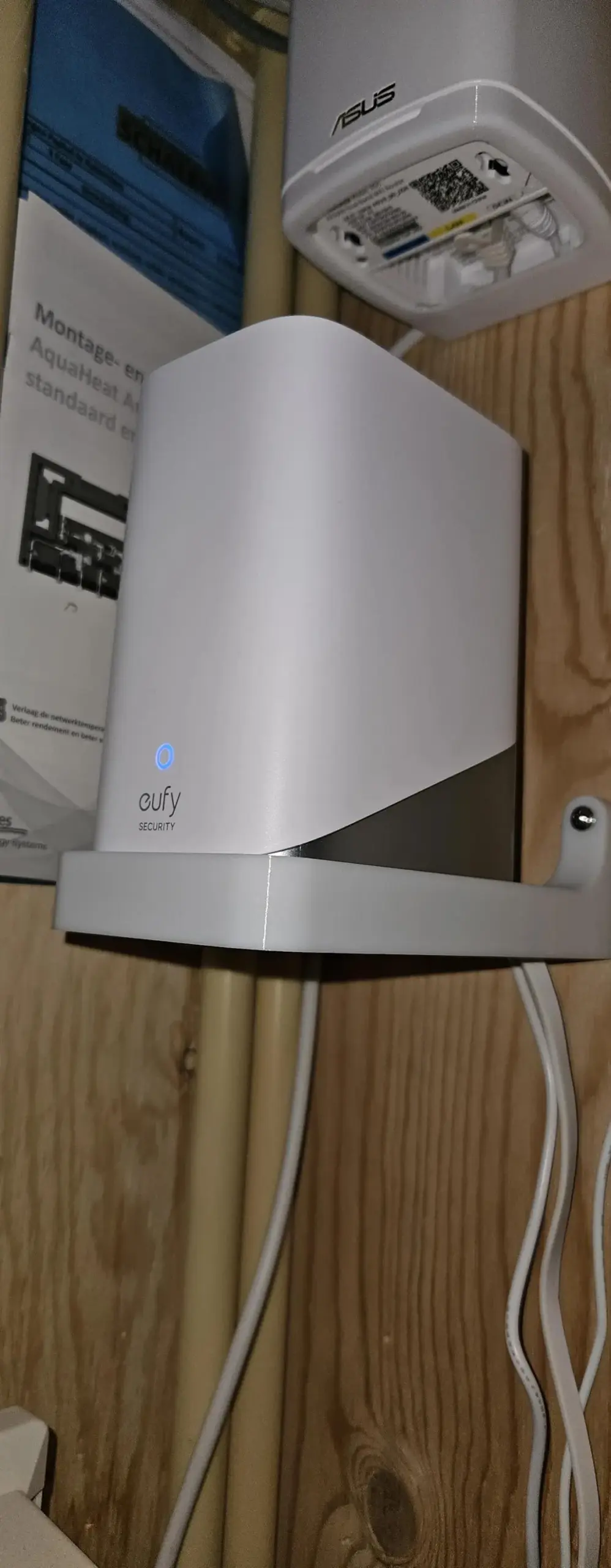 Custom crafted wall mount for the HomeBase S380 (HomeBase 3). Mount designed to allow routing of cables through the back with no kinks.