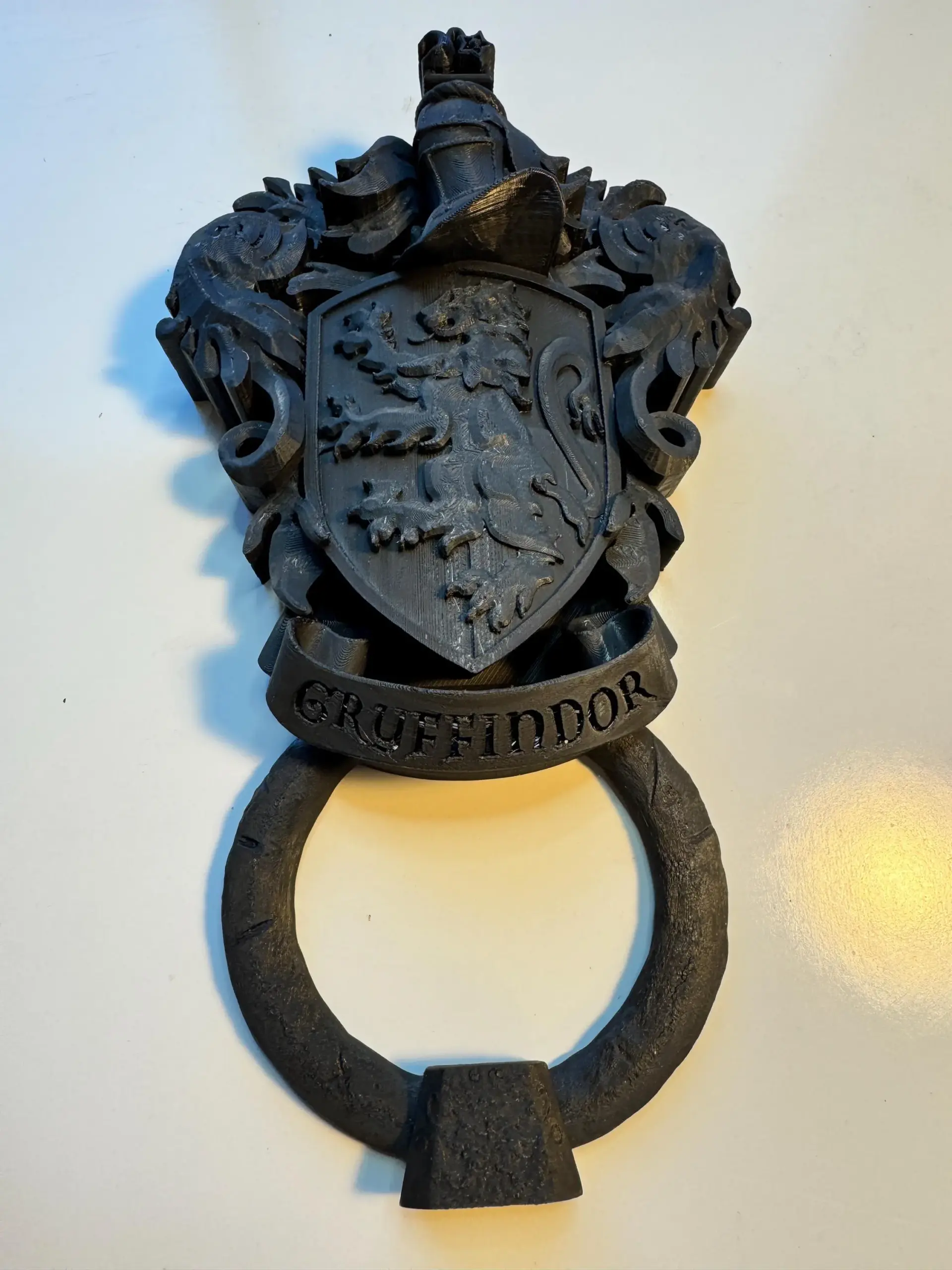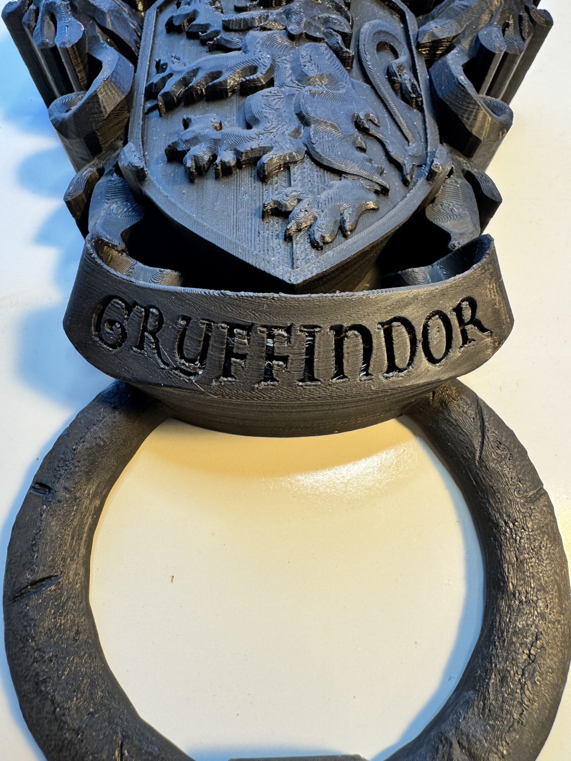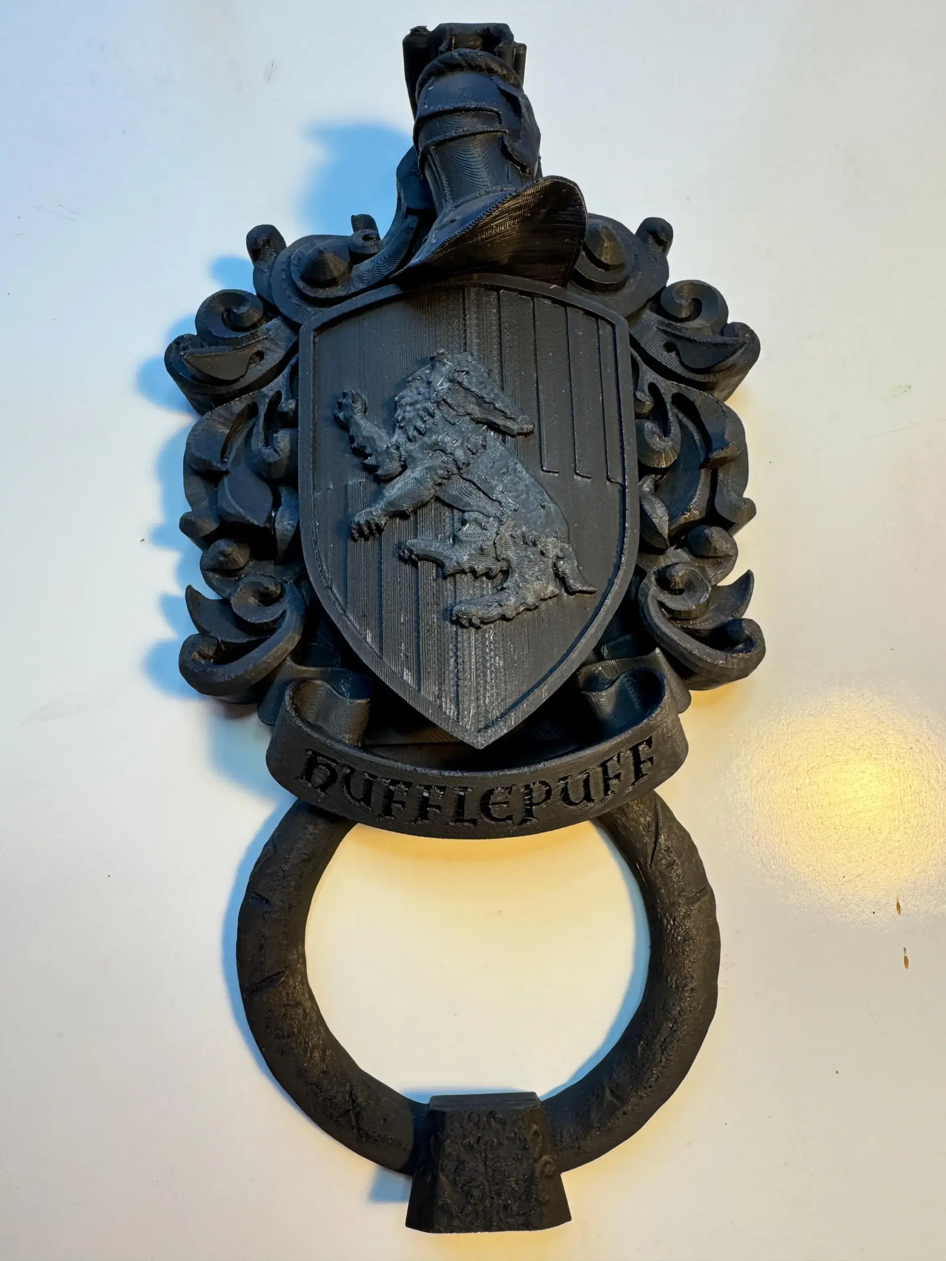 Decorative door knockers designed in the style of the crests of the four houses from the “Harry Potter” series.