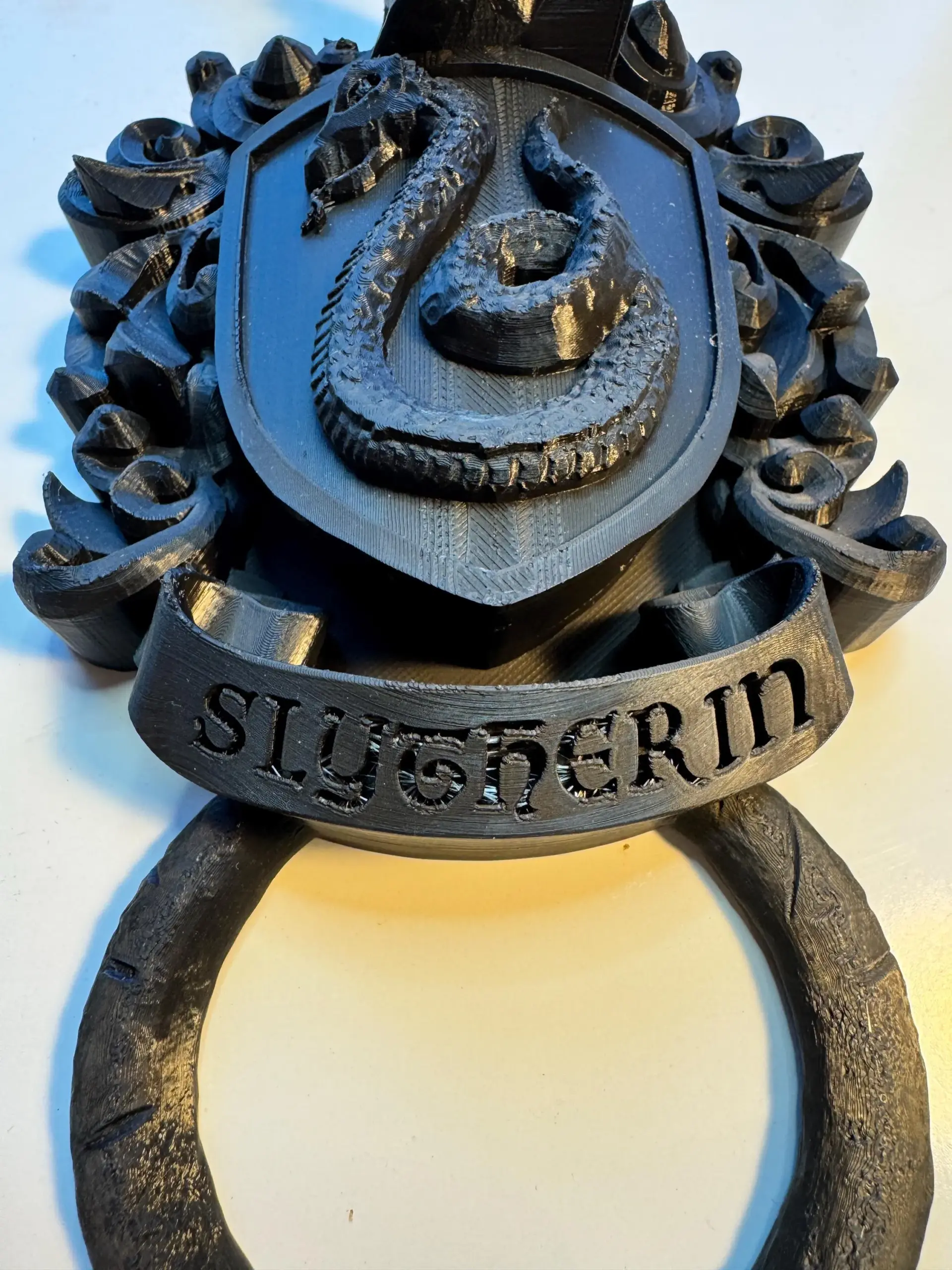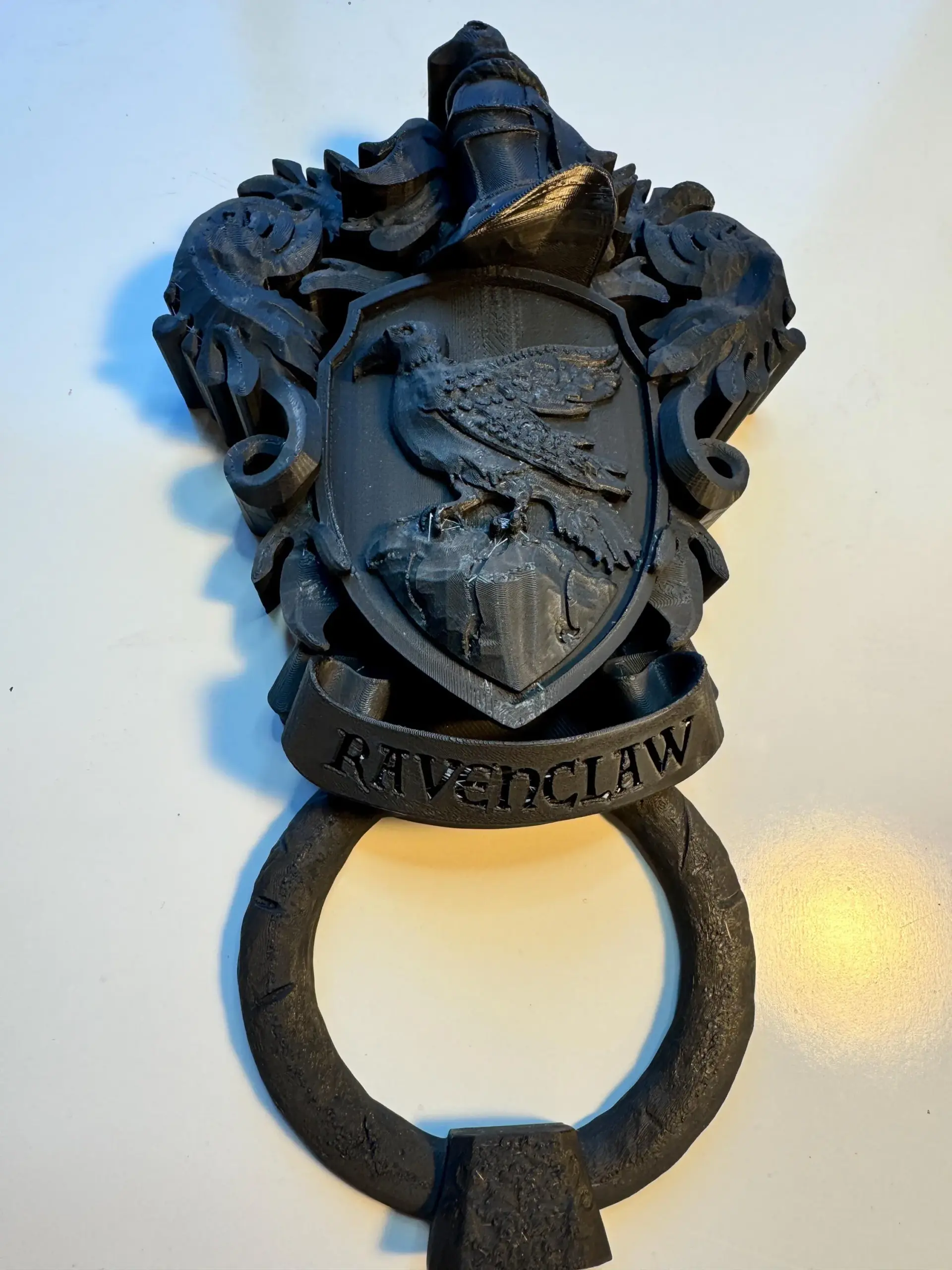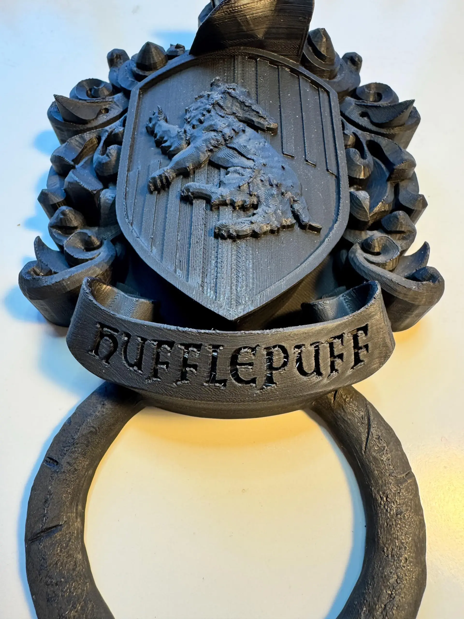 Decorative door knockers designed in the style of the crests of the four houses from the “Harry Potter” series.