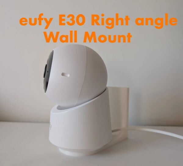 90 degree wall mount for the EUFY E30, Mounted securely to your wall with provided screws and wall anchors. Size is comparable to the original wall plate that comes with the camera and has a tight fit to keep the camera in place securely. Made from Technical PETG for a long life, even in hot conditions like Arizona garages.