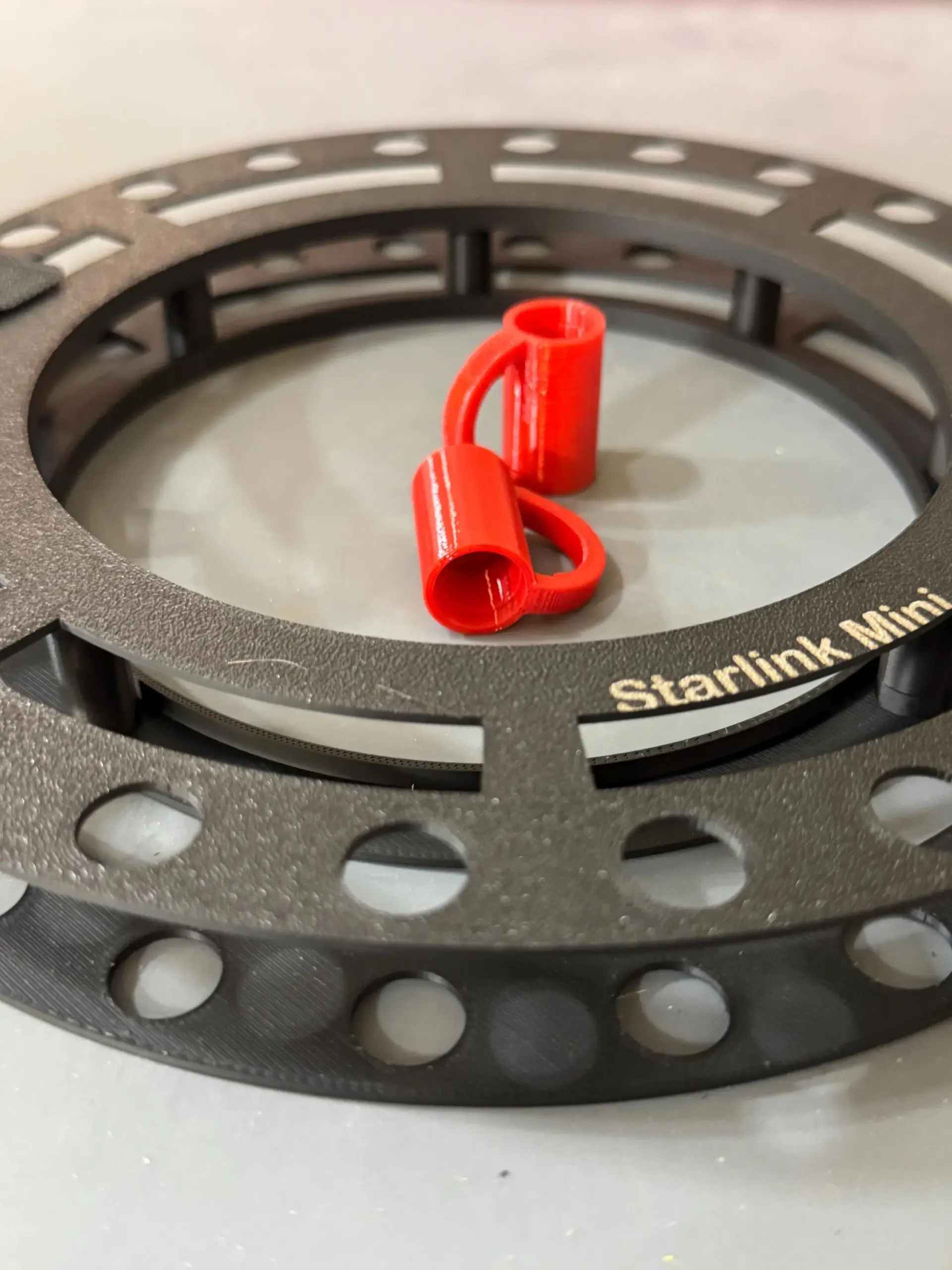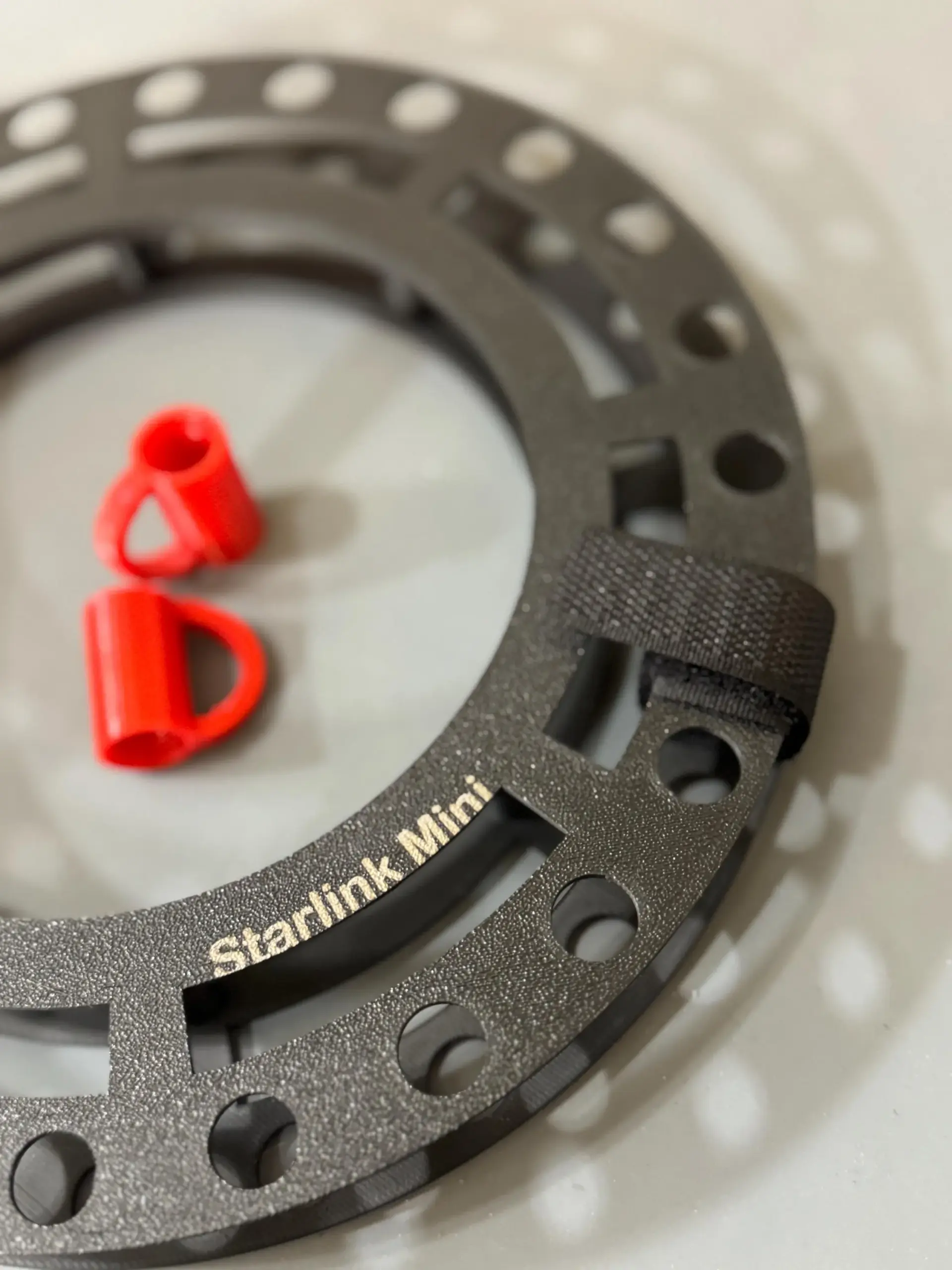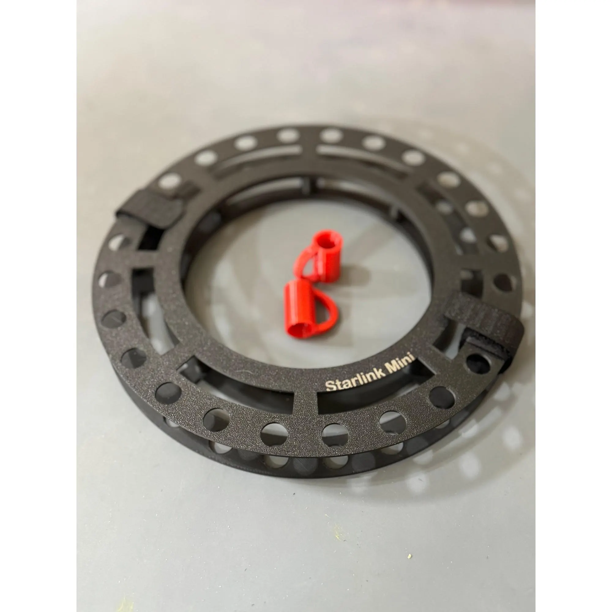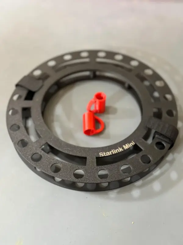 This cable spool keeps your Starlink Mini power cable neat and organized. It’s lightweight, round for easy winding. It comes with watertight end caps for your cable, printed in bright orange / red so they won’t get lost in the grass.