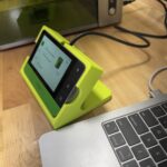 The XTool F1 ULTRA comes with a standalone touchscreen controller tethered to the machine by cable. It is not supplied with any stand and the controller is usually just laid flat on the table.